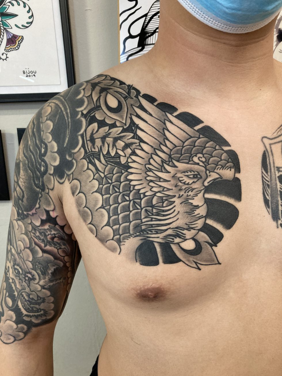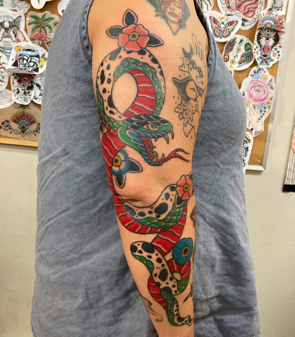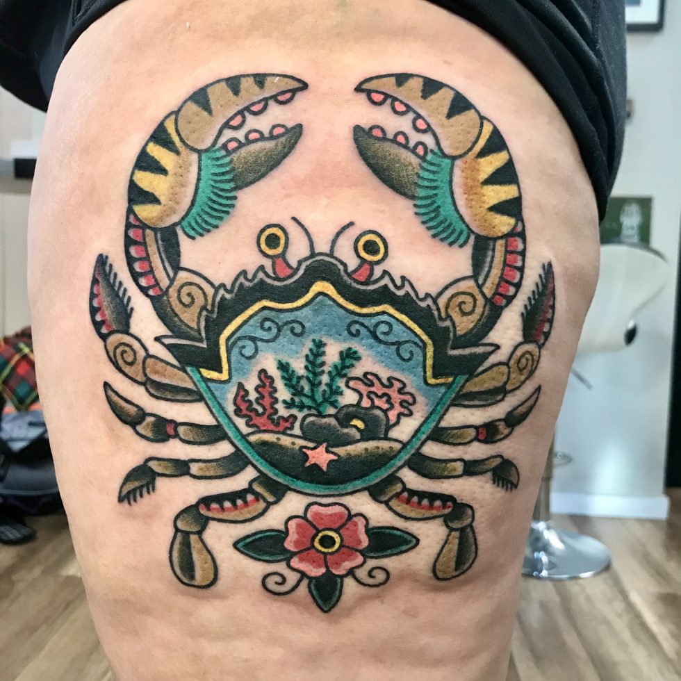 Since a young age, I have been drawn to the sea. You can see it in my work, as I love to draw fishes and nautical themed pieces. I like to make powerful bold imagery, be it Traditional American, Black Work or Japanese tattoos.